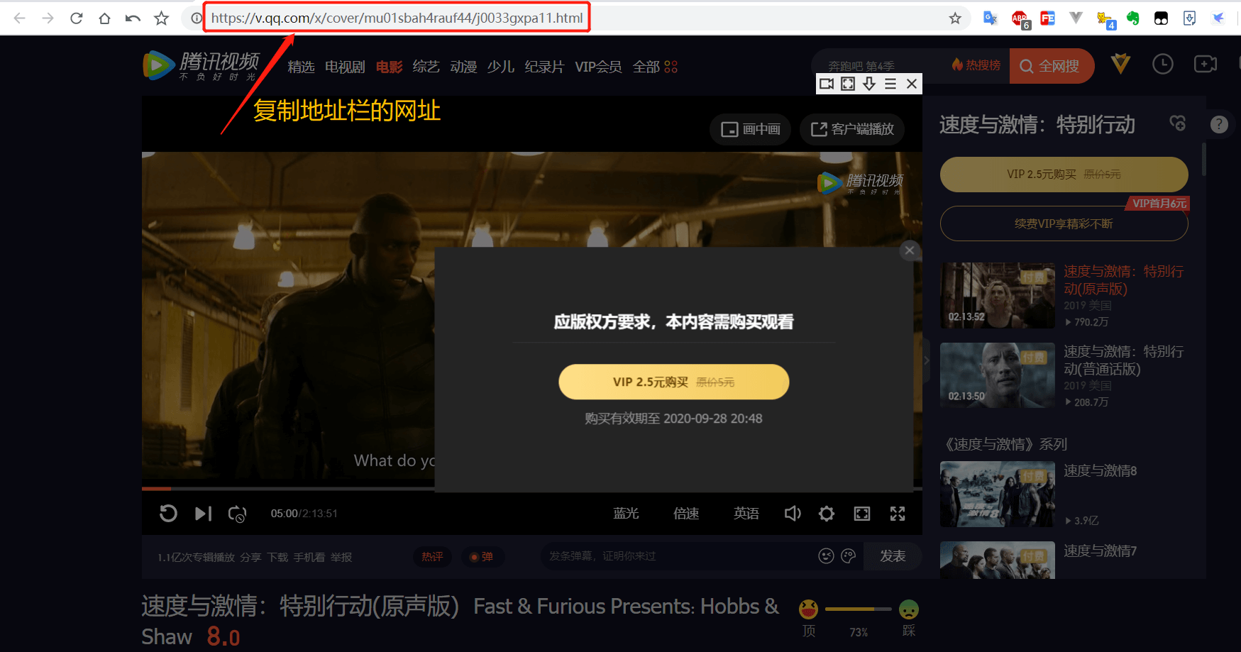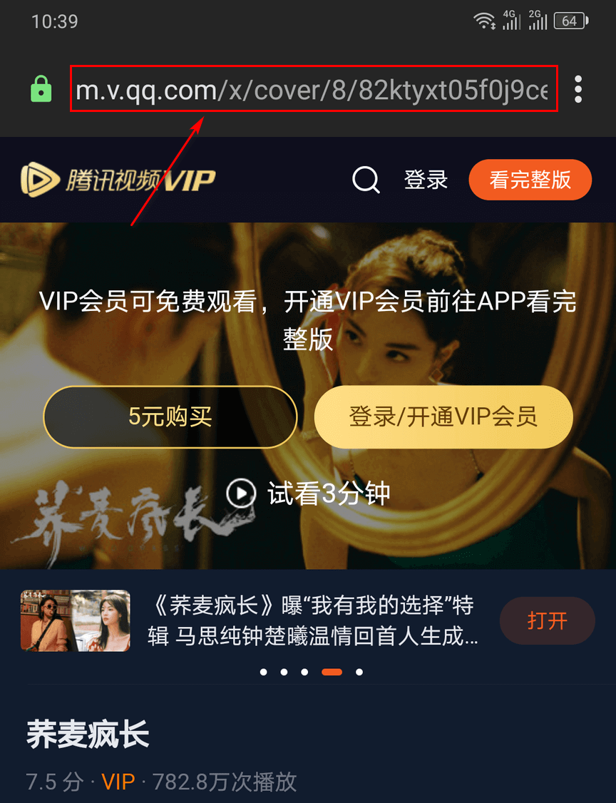 夸克浏览器Android 夸克浏览器iOS 极速浏览器手动去各大视频平台网页找到自己喜欢的影视剧综艺视频播放页,在浏览器地址栏复制当前的网址链接(如下图所示)